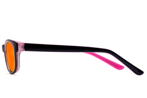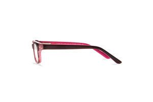 Pretty and pink, Emma updates a classic frame with an accent color blended with a classic black finish