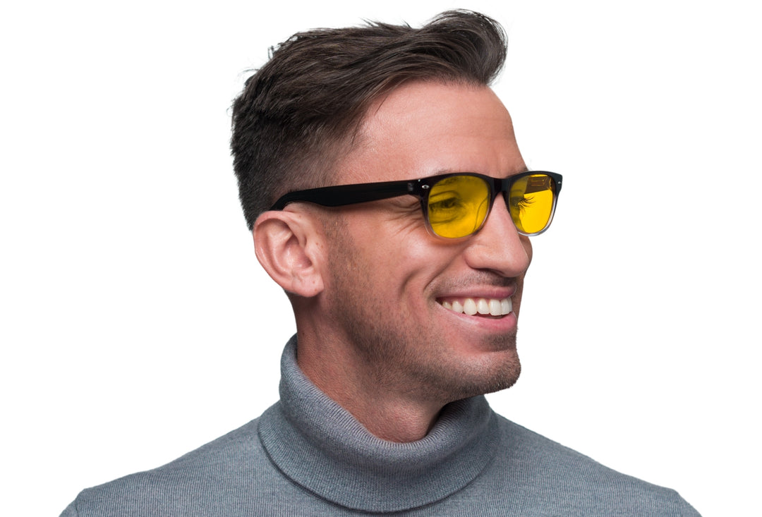 Our night time red lenses expand that blue light blocking coverage up to 550nm and helps set the body clock up for successful sleep.